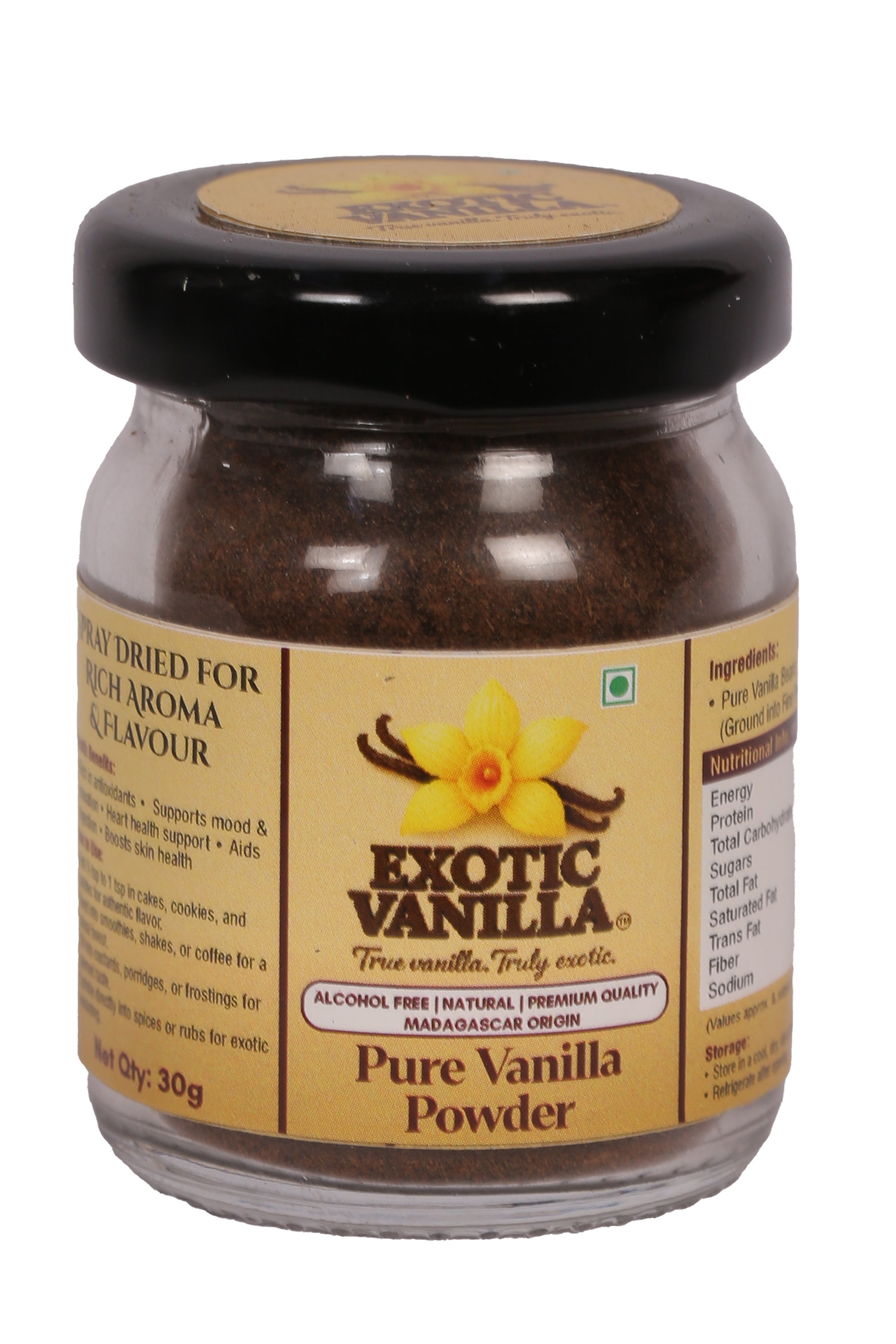 Made from dried and finely ground whole vanilla beans with no added sugars or fillers. Spray-dried for rich aroma and flavor